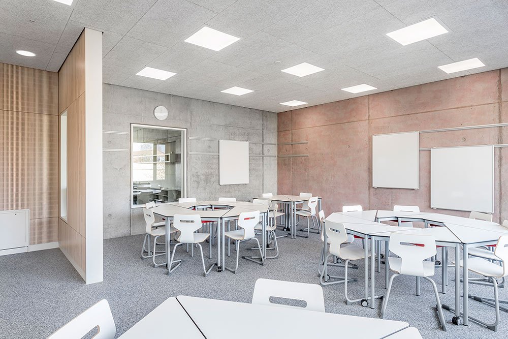 Das neue Lernkonzept „Lern³“ des Hans-Multscher-Gymnasiums in Leutkirch basiert auf der aktuellen Bildungsforschung und besteht aus einem 3-Säulen-Modell. In den Bereichen Lern-Bewusstsein, Lern- Begleitung und Lern-Umgebung werden bewährte Methoden mit neuen pädagogischen Konzepten kombiniert, um ein Umfeld zu schaffen, indem Inhalte und Kompetenzen besser vermittelt werden können. Die Lern-Umgebung wurde mit dem von uns in raumakustischer Hinsicht begleiteten Neubau für die beiden Eingangsstufen umgesetzt.