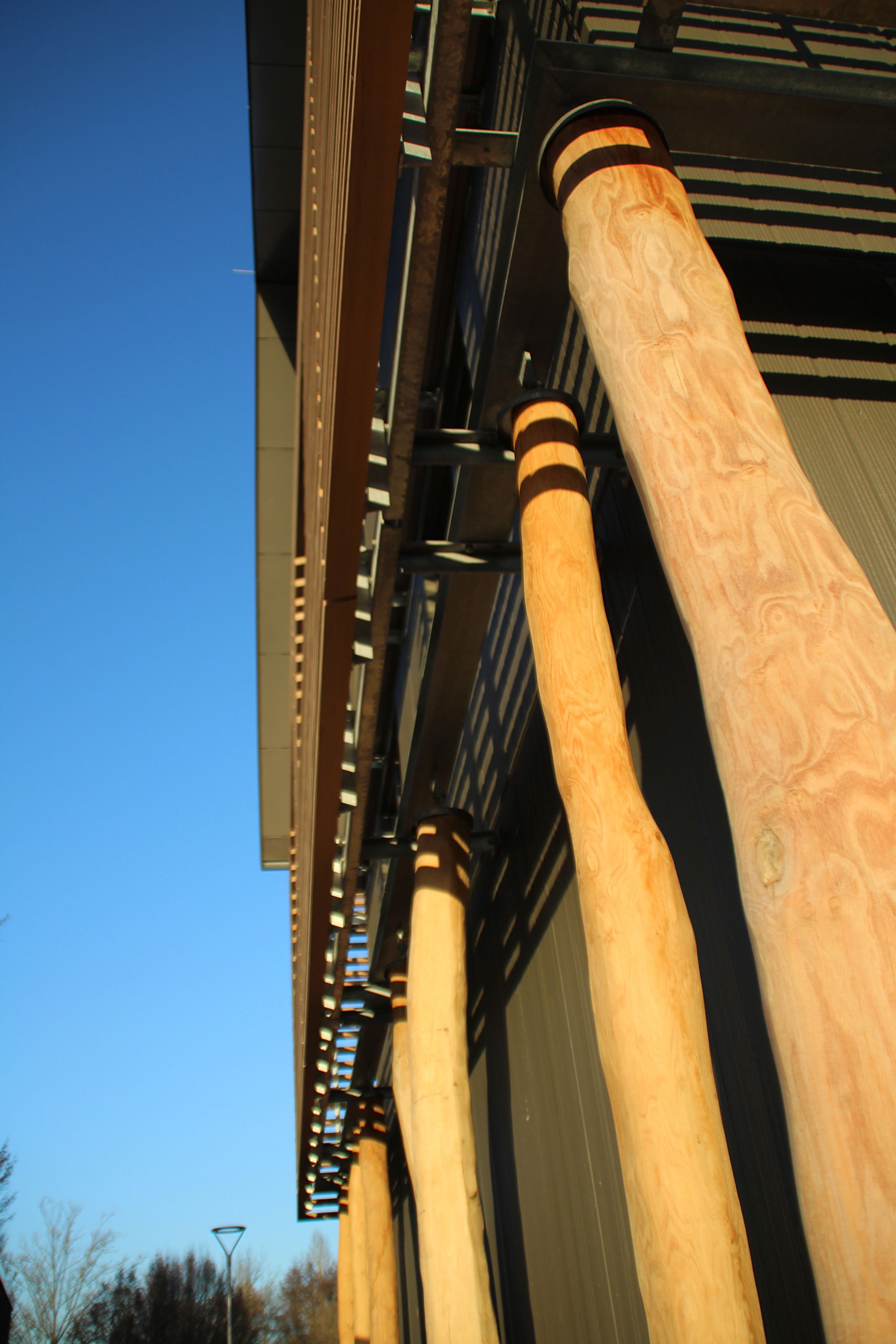 Der Ortsteil Unteruhldingen der Gemeinde Uhldingen-Mühlhofen ist bekannt für das Weltkulturerbe – die steinzeitlichen Pfahlbauten. In Anlehnung daran wurde der 2017 eingeweihte Bürgersaal „Welterbesaal“ benannt. Die Pfostenkonstruktion im Erdgeschoss und der Sonnenschutz im Obergeschoss nehmen ebenfalls dieses Motiv auf und imitieren die historischen Bauten.