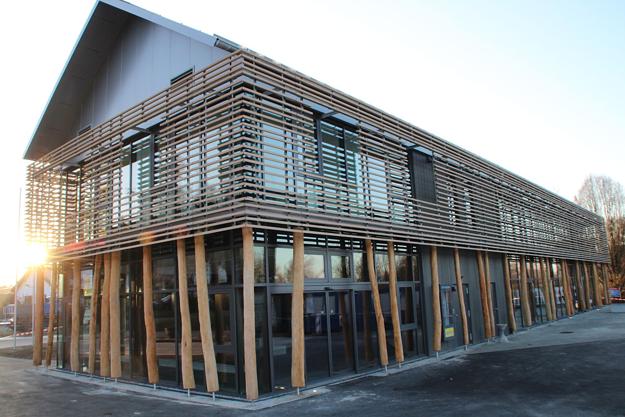 Der Ortsteil Unteruhldingen der Gemeinde Uhldingen-Mühlhofen ist bekannt für das Weltkulturerbe – die steinzeitlichen Pfahlbauten. In Anlehnung daran wurde der 2017 eingeweihte Bürgersaal „Welterbesaal“ benannt. Die Pfostenkonstruktion im Erdgeschoss und der Sonnenschutz im Obergeschoss nehmen ebenfalls dieses Motiv auf und imitieren die historischen Bauten.