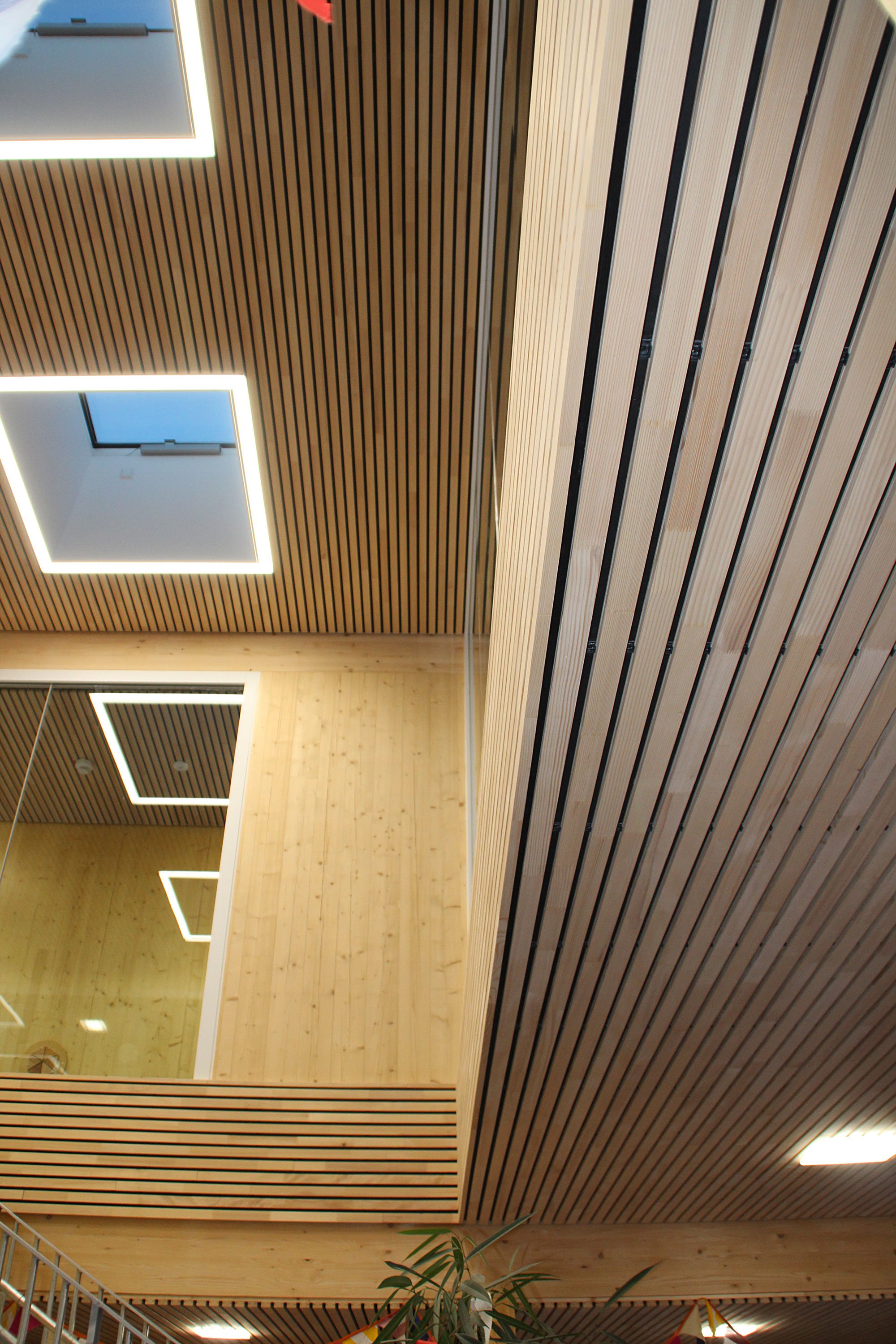 Das Gebäude ist in Holzbauweise errichtet: Wände in Brettsperrholz und in Holzrahmenbauweise, Decken in Massivbauweise und als Holzrippendecken. Dies erforderte eine detaillierte Planung, um den Schallschutzanforderungen gerecht zu werden.